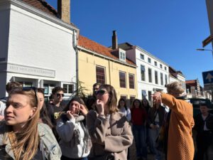 Au programme, des activités ludiques en pleine nature telles qu’une balade en bord de mer, un parcours d’une vingtaine de kilomètres à vélo et des chasses aux indices à travers les rues fréquentées… Mais aussi la découverte émouvante du musée de la grande inondation des Pays-Bas et la visite guidée de Middelbourg en néerlandais en compagnie d’une guide aussi atypique que sympathique ! Les élèves ont également déambulé dans les ruelles de Zierkizee à la recherche d’indices pour un jeu de piste à en perdre son néerlandais, et ont pris la mer pour aller rendre visite à des phoques se reposant sur un banc de sable au large des côtes. Le dernier jour fut consacré à la visite d’Anvers et de son musée Mas, afin d’en apprendre plus sur l’histoire de cette ville portuaire et de profiter d’un panorama impressionnant. Après une visite rythmée par un quizz photos, nous avons repris la route vers notre cité du Doudou, des souvenirs ensoleillés plein la tête !